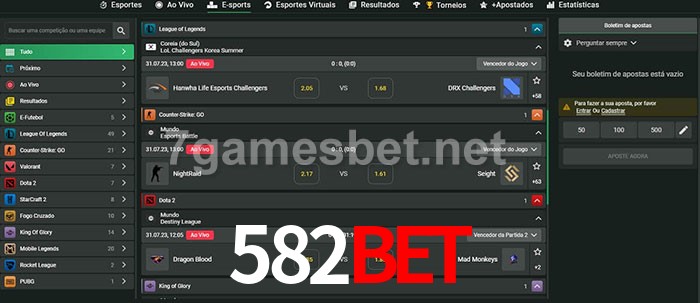 A aposta 582Bet oferece aos jogadores a experiência mais conveniente de apostas em eSports!
